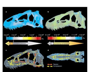 Rayfield e colegas aplicam análise de elementos finitos (FEA) ao crânio de Allosaurus, criando o primeiro modelo FEA completo de um terópode. O resultado é a descoberta de que o crânio era projetado para suportar forças de tração axial, não para mordida de fechamento. Isso sugere uma técnica de ataque em forma de gancho ou machadinha, rasgando tecido mole em vez de esmagar ossos, e revolucionou a compreensão do comportamento predatório do Allosaurus.