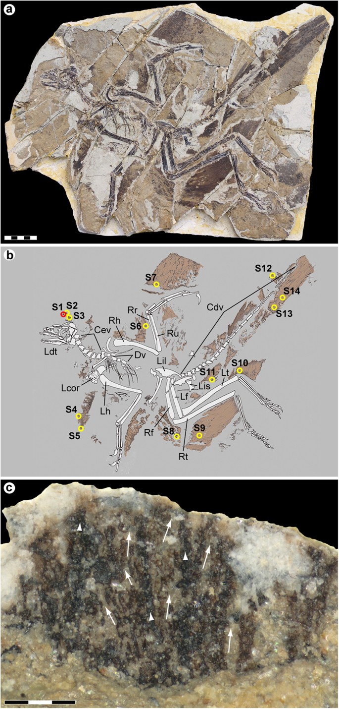 Espécime quase completo sujeito de estudos de composição molecular por Lindgren et al. (2015) e Cincotta et al. (2020). Diferentemente do BMNHC PH828, mostrou apenas melanossomas cinza-pretos, levantando a possibilidade de variação intraespecífica na coloração. É uma das principais fontes de dados sobre a química de fossilização de penas de dinossauros.