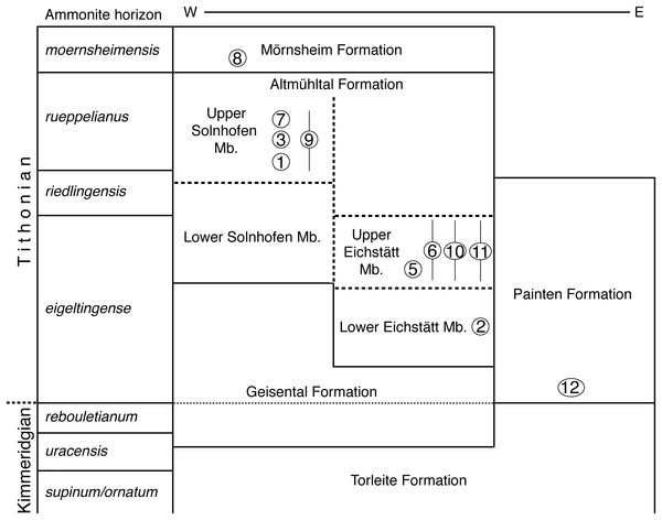 O Calcário de Solnhofen, formalmente denominado Formação Altmühltal, é uma lagerstätte do Jurássico Superior (Titoniano, aproximadamente 150 Ma) localizada na Bavária, Alemanha. As camadas de calcário fino de granulação ultrafina se formaram em lagoas hipersalinas e anóxicas de um mar epicontinental, separadas do oceano por recifes de corais e esponjas. As condições anóxicas do fundo das lagoas impediam a atividade de carniceiros e bactérias decompositoras, permitindo preservação excepcional de tecidos moles, penas, escamas e até impressões de pele. A formação produziu, além do Archaeopteryx, fósseis excepcionais de pterossauros, peixes, libélulas, medusas e plantas.