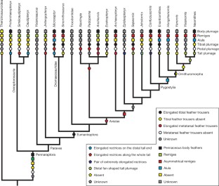 Foth, Tischlinger e Rauhut descrevem um novo espécime de Archaeopteryx (o décimo primeiro esquelético), excepcionalmente preservado no Calcário de Solnhofen, que revela pela primeira vez que todo o corpo estava coberto de penas penaçudas. O espécime mostra penas longas e simétricas na tíbia mas curtas no tarso-metatarso, além de penas de contorno no tronco. A análise da distribuição das penas nos membros e na cauda sugere fortemente que as penas penaçudas evoluíram por razões outras que o voo, possivelmente para exibição ou isolamento térmico. Este trabalho é fundamental para entender a evolução das penas aviárias e o surgimento do voo como função secundária de estruturas originalmente adaptativas para outros fins.