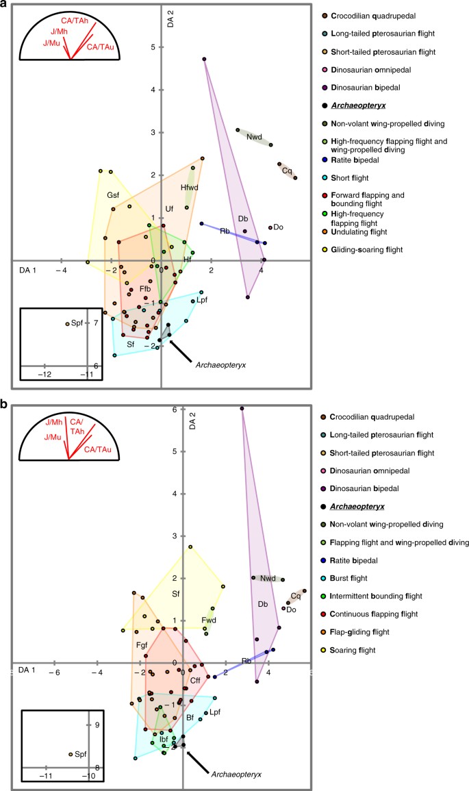 Voeten e colegas utilizam microtomografia de síncrotron por contraste de fase em três espécimes de Archaeopteryx para analisar a geometria de seção transversal dos ossos das asas. Os resultados mostram que a arquitetura dos ossos das asas do Archaeopteryx exibe uma combinação de propriedades geométricas de seção transversal compartilhadas exclusivamente com aves voadoras, particularmente aquelas que utilizam voo batido de curta distância ocasional. Esses dados refutam a hipótese de que o Archaeopteryx era exclusivamente planejador e suportam capacidade de voo ativo por batedura das asas, com um ângulo de batida da asa mais anterodorsal-posteroventral do que em aves modernas. O estudo usa metodologia não-destrutiva de imageamento avançado.