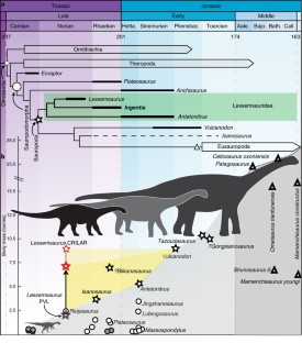 Apaldetti e colegas analisam por histologia óssea os sauroópodóomorfos triássicos da Argentina, demonstrando que a tendência para o crescimento rápido e o gigantismo se iniciou já no Triássico Tardio, 30 milhões de anos antes do pico Jurássico e Cretáceo. A taxa de crescimento dos sauroópodóomorfos triássicos era três vezes maior que a de répteis modernos. Este estudo fornece o contexto evolutivo para entender como o Argentinosaurus, no extremo final dessa trajetória, pôde atingir 70-80 toneladas. A tendência para o gigantismo foi assim estabelecida logo no início da linhagem, não uma novidade evolucionária tardia.