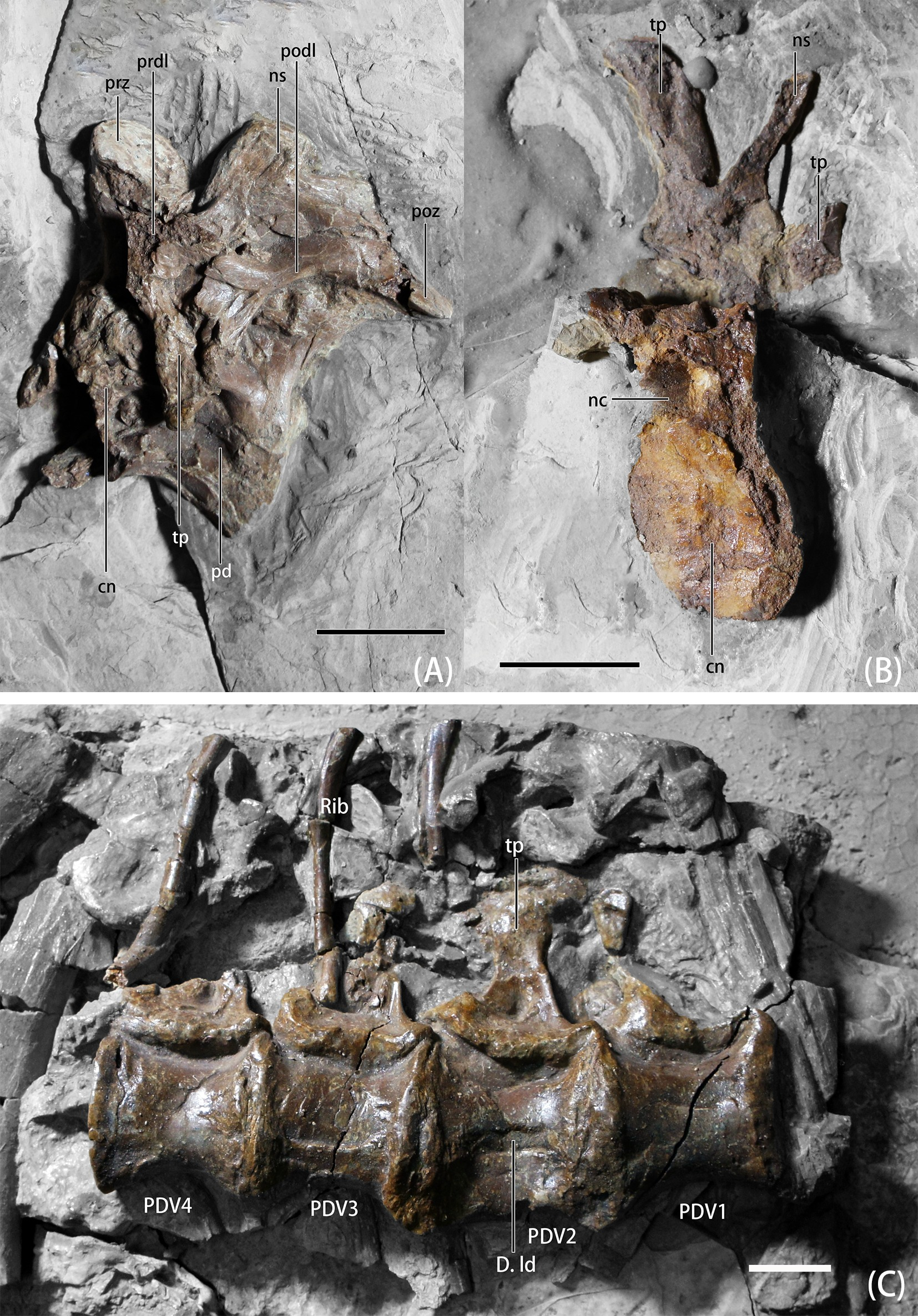 Redescrição completa do pós-crânio do holótipo IVPP V11559 de Beipiaosaurus, incluindo duas vértebras dorsais nunca antes descritas. Fornece o conjunto mais robusto de caracteres pós-cranianos para o táxon e reafirma sua posição como terizinossauroide basal.