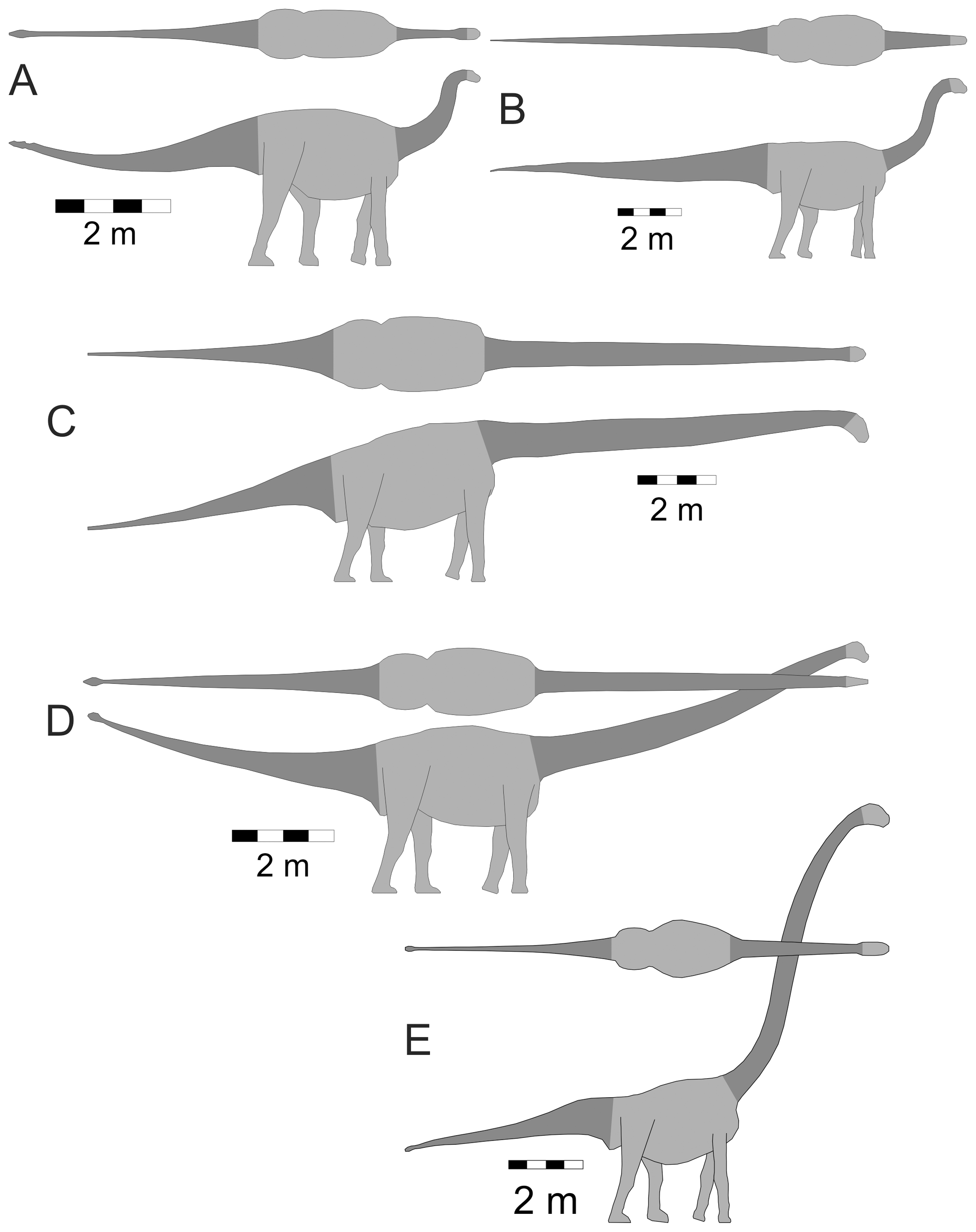 Henderson analisa 16 modelos digitais tridimensionais de saurópodes variando de 639 kg (juvenil de Camarasaurus) a 25 toneladas (Brachiosaurus), medindo áreas de superfície total e do pescoço para testar a hipótese de que os pescoços longos funcionavam como radiadores térmicos. O resultado revela uma relação não trivial: enquanto a área total do corpo mostra alometria negativa contra a taxa metabólica (como esperado), a área do pescoço mostra alometria positiva com expoente de 1,17, significando que o pescoço cresce mais rápido que o resto do corpo em animais maiores. No Brachiosaurus, o pescoço representaria uma fração desproporcional da superfície corporal, o que é consistente com uma função adicional de termorregulação. O estudo não descarta funções alimentares ou reprodutivas, mas adiciona a hipótese termoregulatória como variável seletiva evolutiva. É um dos primeiros trabalhos a quantificar a fisiologia termal de Brachiosaurus por modelagem digital.