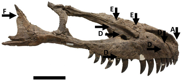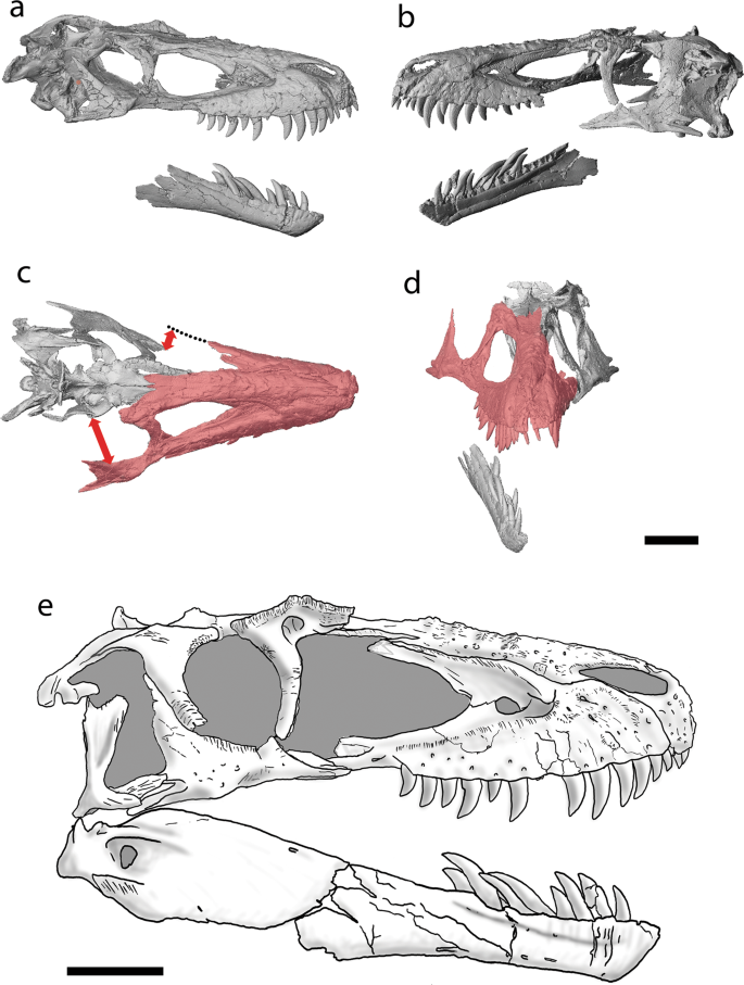 Análise de um espécime imaturo de Daspletosaurus do Dinosaur Provincial Park que apresenta duas categorias distintas de ferimentos no crânio e na mandíbula. Os ferimentos pré-morte mostram evidências de cicatrização, indicando que o animal sobreviveu a ataques de outro grande terópode, provavelmente um coespecífico. Os ferimentos pós-morte foram causados por mordidas de um grande tiranossaurídeo depois que a carcaça havia começado a decompor-se. Este estudo fornece evidência direta de combates craniofaciais intraespecíficos em tiranossaurídeos, comportamento análogo ao observado em crocodilos modernos, e levanta a possibilidade de canibalismo no grupo. É a evidência comportamental mais direta disponível para Daspletosaurus.