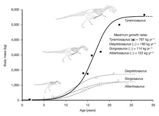Estudo seminal que usa histologia óssea para reconstruir os parâmetros de história de vida dos tiranossaurídeos, incluindo Daspletosaurus. As curvas de crescimento revelam um padrão surpreendente: após um período juvenil lento, havia um espurt de crescimento acelerado de aproximadamente quatro anos, durante o qual o animal ganhava cerca de 180 kg por ano. A maturidade sexual coincidia com o início do espurt, e o tamanho adulto máximo era atingido em cerca de 20 anos. Daspletosaurus cresce mais lentamente que T. rex, consistente com seu menor tamanho adulto. O trabalho demonstra que o gigantismo em Tyrannosaurus foi alcançado por extensão do período de crescimento rápido, não por aceleração da taxa de crescimento em si. Referência fundamental para entender a biologia de desenvolvimento de Daspletosaurus.
