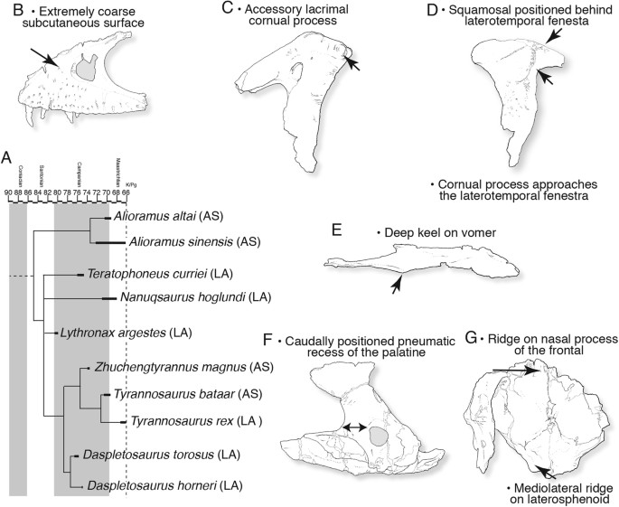 Descrição de um osso frontal isolado de Daspletosaurus torosus da Formação Dinosaur Park de Alberta, pertencente a um indivíduo subadulto de grande porte. O estudo fornece novos dados sobre as mudanças ontogenéticas na morfologia craniana dos tiranossaurídeos. O frontal subadulto indica que, embora a ontogenia de Daspletosaurus torosus fosse geralmente semelhante à de Tyrannosaurus rex, havia diferenças específicas. Além disso, o trabalho conclui que algumas autapomorfias sugeridas recentemente para certos táxons de tiranossaurídeos são inadequadas por apresentarem ampla distribuição dentro do clado, tendo implicações para a validade de algumas espécies descritas.