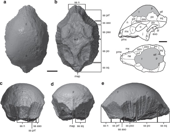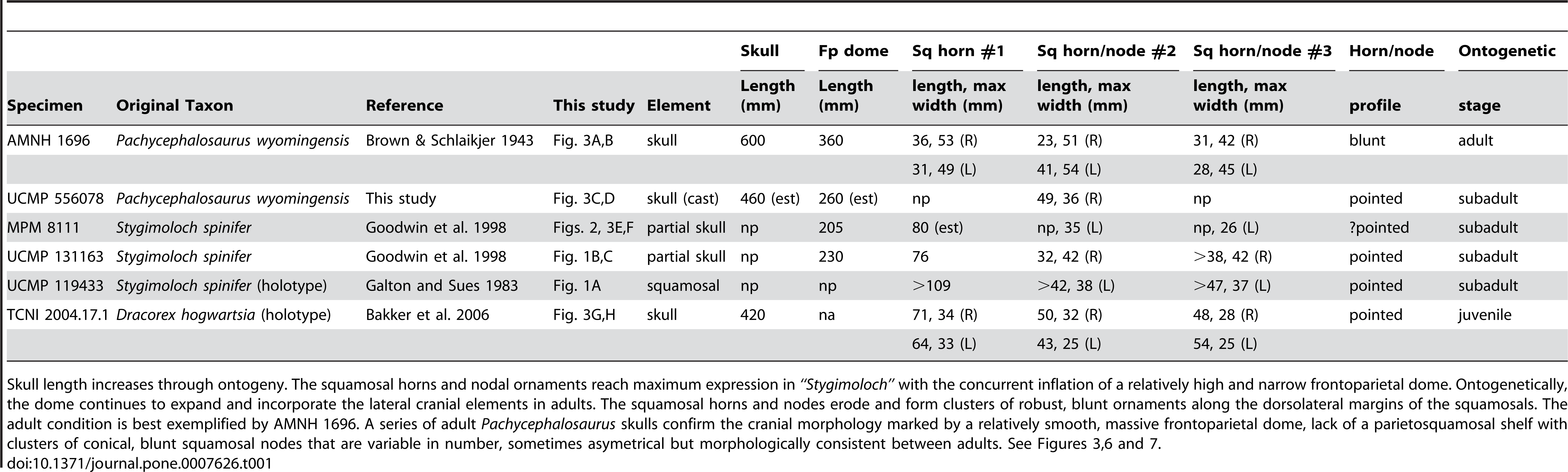 Descrição do pachicefalossaurídeo mais antigo da América do Norte, que fornece novo contexto para avaliar a hipótese de sinonímia ontogenética de Dracorex hogwartsia e Stygimoloch spinifer. Evans e colaboradores revelam diversidade inesperada em dinossauros ornitísquios de pequeno porte e argumentam que a variação morfológica dos crânios planos versus abobadados pode refletir, ao menos em parte, diversidade taxonômica real e não apenas ontogenia. O trabalho demonstra que linhagens de pachicefalossaurídeos de crânio plano ou baixo existiram ao longo da história evolutiva do grupo, e não apenas como estágios juvenis dos abobadados. Isso enfraquece o argumento de que todos os crânios planos são necessariamente juvenis, e fortalece a possibilidade de que Dracorex seja uma espécie distinta. O estudo também ilumina a biogeografia dos pachicefalossaurídeos norte-americanos e as extinções no final do Cretáceo.