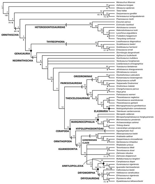 Boyd apresenta a análise filogenética mais ampla já realizada sobre os ornitísquios basais até então, com 255 caracteres avaliados em 65 espécies. O resultado é de alto impacto para o entendimento do Hypsilophodon: ele é recuperado como o único ornitópode não iguanodontiano, posição que o distingue de todos os outros ex-membros da família Hypsilophodontidae, que são realocados em Parksosauridae como grupo-irmão de Cerapoda. Essa descoberta dissolve formalmente a hipótese de uma família Hypsilophodontidae monofilética. O trabalho propõe ainda uma origem Gondwânica para Dinosauria e uma diversificação asiática dos neornistísquios basais. Publicado como open access em PeerJ, com dados suplementares e matriz disponíveis, tornou-se referência filogenética fundamental para todos os estudos subsequentes sobre ornitópodes basais.