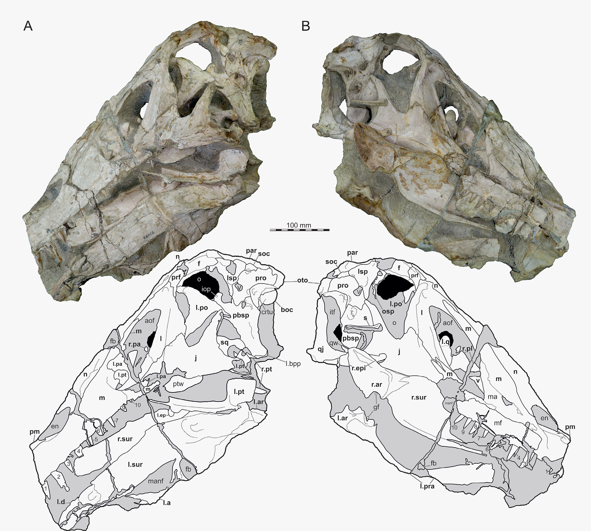 Crânio quase completo de subadulto, faltando apenas a ponta do focinho e as partes mais anteriores da mandíbula. É o crânio de espinossaurídeo mais completo e melhor preservado conhecido. O espécime foi significativamente alterado por traficantes de fósseis antes de chegar aos cientistas.