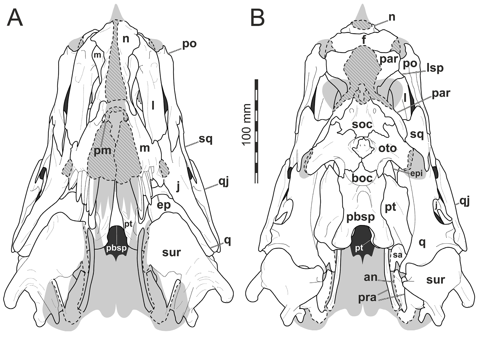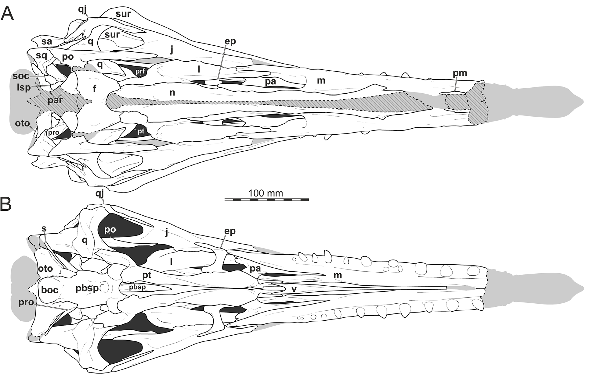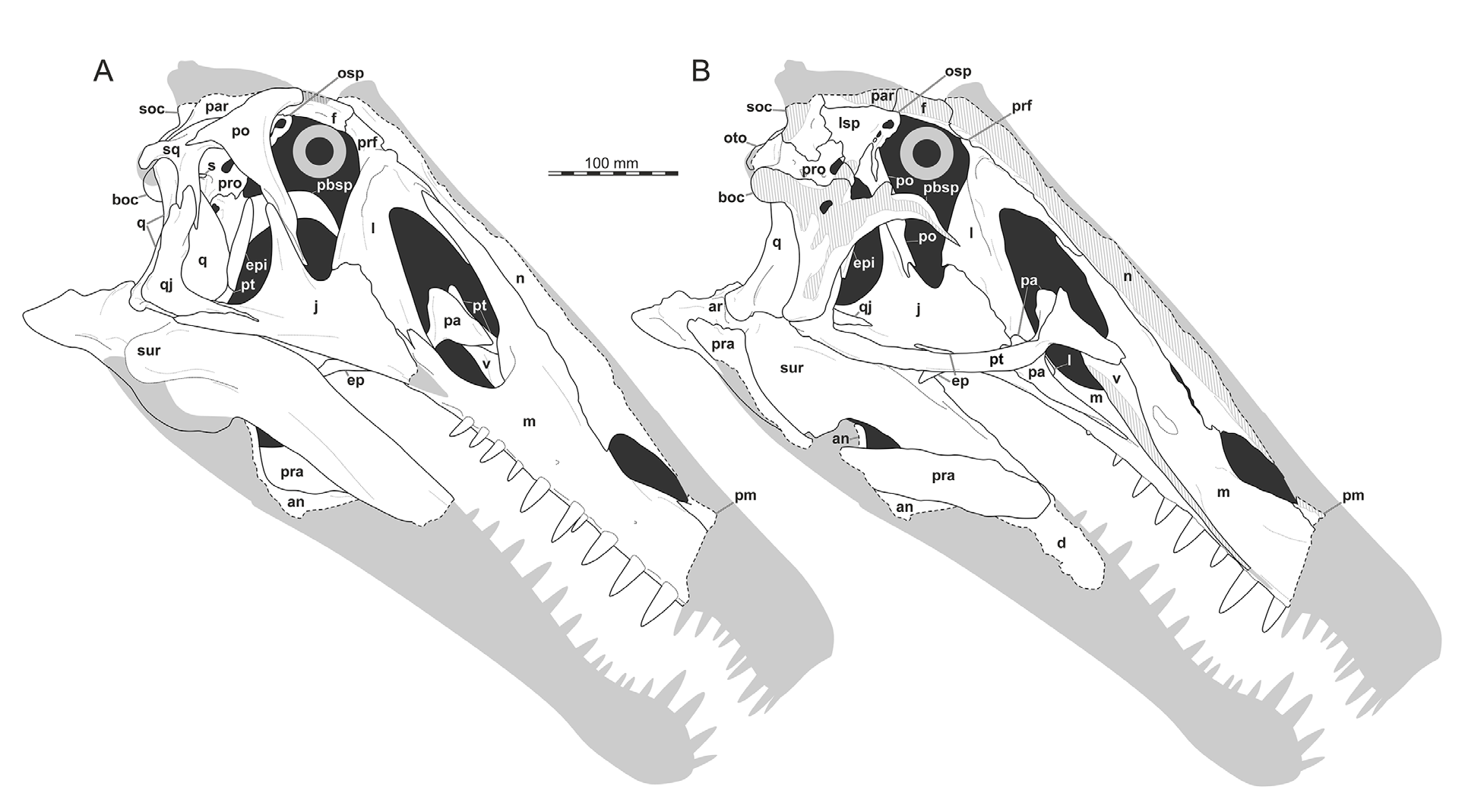 Sales e Schultz reexaminam os crânios dos espinossaurídeos brasileiros e identificam que as regiões rostrais preservadas nos holótipos de Irritator e Angaturama se sobrepõem anatomicamente, sugerindo que ambos podem representar um mesmo indivíduo. O trabalho analisa também o Oxalaia quilombensis da Formação Alcântara e propõe que os espinossaurídeos sul-americanos apresentam feições craniodentais intermediárias entre Baryonychinae e Spinosaurinae. A análise filogenética recupera os táxons brasileiros em posição basal dentro de Spinosaurinae. É o estudo taxonômico mais abrangente sobre espinossaurídeos do Brasil.