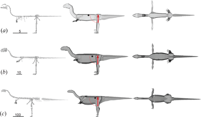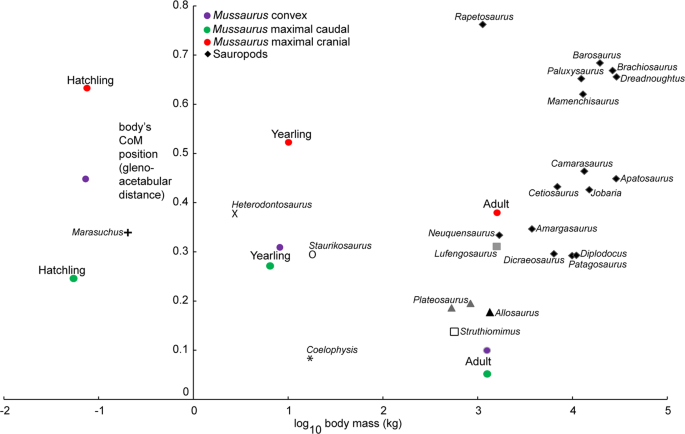 Análise quantitativa das proporções dos membros ao longo da ontogenia de Mussaurus patagonicus, demonstrando uma transição de locomoção bípede nos filhotes para locomoção progressivamente quadrúpede nos adultos. Otero e colaboradores aplicam métodos de análise de imagem e modelagem biomecânica a espécimes de múltiplas faixas etárias, documentando que a razão comprimento-membro-anterior/membro-posterior aumenta sistematicamente com o crescimento. A mudança reflete tanto a demanda funcional de suportar massa corporal crescente em postura quadrúpede quanto uma predisposição filogenética em direção ao quadrupedalismo obrigatório dos saurópodes. Este é o mais antigo exemplo conhecido de transição locomotora ontogenética em um dinossauro, e serve de modelo para entender como o quadrupedalismo evoluiu nos grandes saurópodes. O estudo usa técnicas modernas de tomografia e morfometria 3D para quantificar as mudanças com precisão sem precedente.