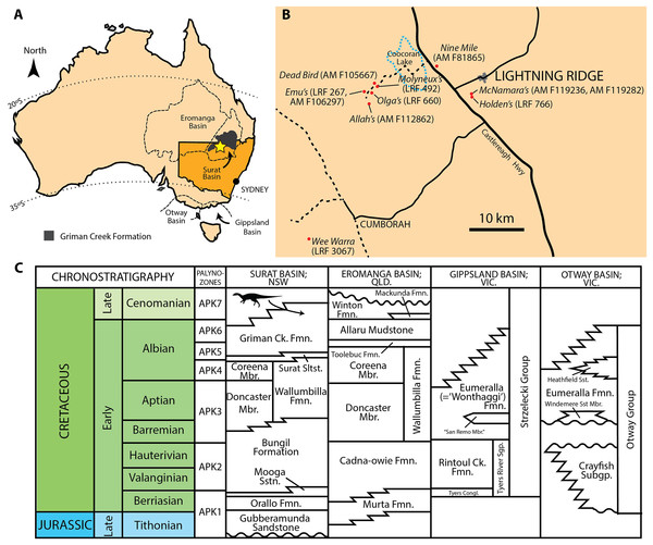 Bell e colegas examinam a diversidade de ornitópodes da Formação Griman Creek (Cenomaniano) de Lightning Ridge, Nova Gales do Sul, descrevendo um novo táxon (Weewarrasaurus pobeni) e analisando dentes isolados atribuídos a um possível iguanodontídeo não identificado. O trabalho compara em detalhe a morfologia dentária com Muttaburrasaurus langdoni, notando diferenças no número de costelas secundárias do esmalte. Os resultados indicam uma fauna de ornitópodes diversa no Cenomaniano da Austrália, com Lightning Ridge funcionando como zona de transição entre as faunas ricas em iguanodontídeos do Queensland e as faunas basais de ornitópodes da Vitória. O estudo amplia o contexto biogeográfico de Muttaburrasaurus e sugere que a diversidade de ornitópodes australianos pode ter sido subestimada.
