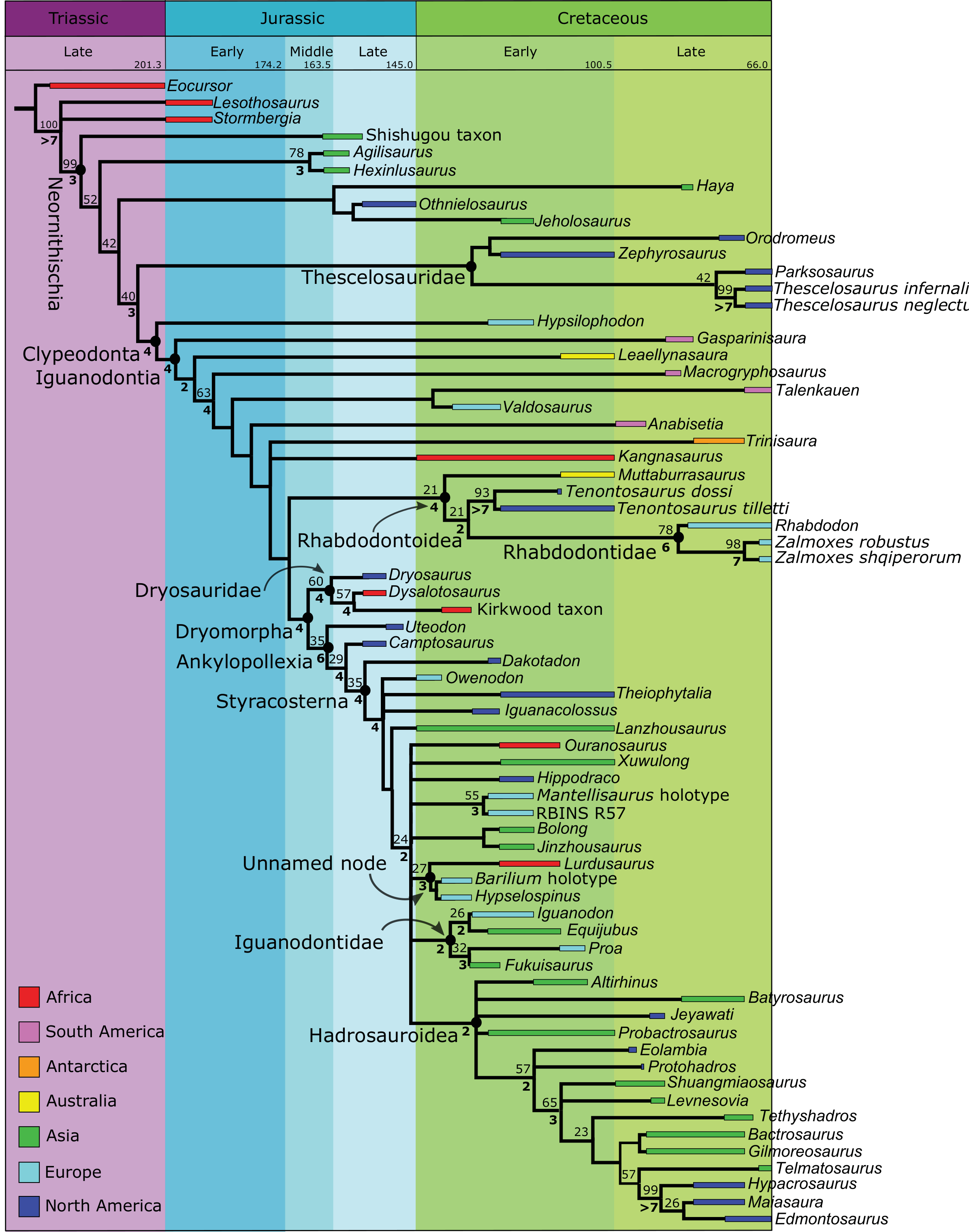 Phylogeny of iguanodontian dinosaurs and the evolution of quadrupedality