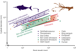 Motani, Rothschild e Wahl publicaram a análise quantitativa que estabeleceu definitivamente Ophthalmosaurus como o vertebrado com maior olho proporcional já conhecido. O estudo utilizou modelos ópticos baseados nas dimensões do anel escleral para calcular a capacidade visual em profundidade, demonstrando que os olhos de Ophthalmosaurus eram adaptados para ambientes mesopelágicos escuros (abaixo dos 200 m). Os resultados sugerem comportamento de mergulho profundo em busca de lulas bioluminescentes, análogo ao de baleias-de-cachalote modernas. Este paper transformou a forma como os ictiossauros são compreendidos ecologicamente.