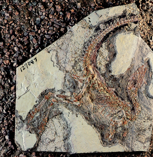 O holótipo de Sinosauropteryx prima, composto pela placa principal GMV 2123 e pela contra-placa NIGP 127586. Preserva as primeiras estruturas filamentosas identificadas em um dinossauro não-aviário, com impressões visíveis ao longo do dorso, cauda e pescoço. É o espécime que iniciou a revolução da Bióta de Jehol na paleontologia.