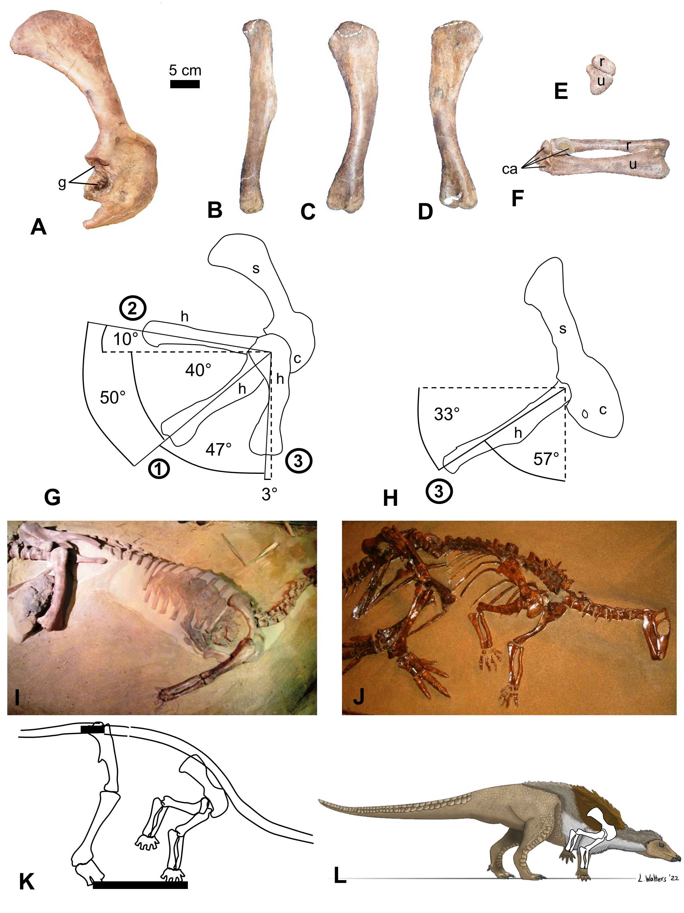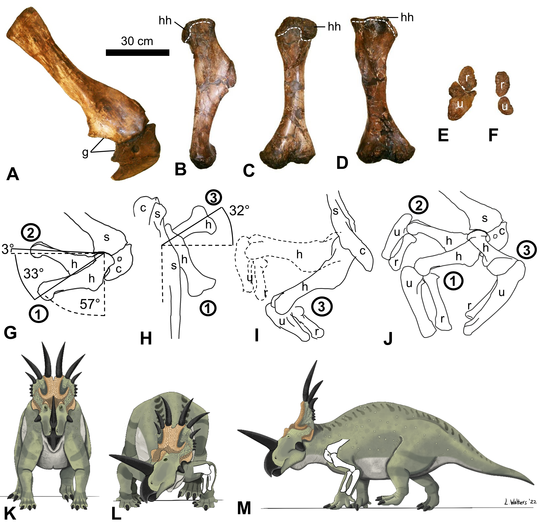 Cintura peitoral e ossos do membro anterior do holótipo de Styracosaurus albertensis com diagramas de amplitude de movimento. Holmes e Ryan (2013) descreveram esses mesmos elementos esqueléticos na monografia sobre o esqueleto pós-craniano da espécie.