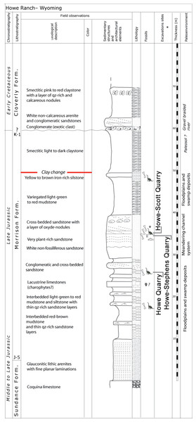 Lovelace descreve o contexto tafonômico e paleoambiental do sítio do Wyoming onde o espécime 'Jimbo' (WDC DMJ-021) de Supersaurus vivianae foi encontrado. A análise sedimentológica revela que o esqueleto do saurópode foi incorporado em um fluxo de detritos de alta viscosidade — um deslizamento de sedimentos saturados de água — desencadeado por incêndio em uma planície aluvial. O corpo do animal foi provavelmente desarticulado antes de ser arrastado pela corrente de detritos, o que explica a preservação parcial (~30% do esqueleto). O sítio também preservou restos de um pequeno terópode semi-articulado, sugerindo que múltiplos animais morreram na mesma área antes do evento de fluxo. Este estudo fornece uma das raras janelas para as condições ambientais exatas em que Supersaurus viveu e morreu, complementando os dados anatômicos com contexto ecológico e sedimentológico detalhado.