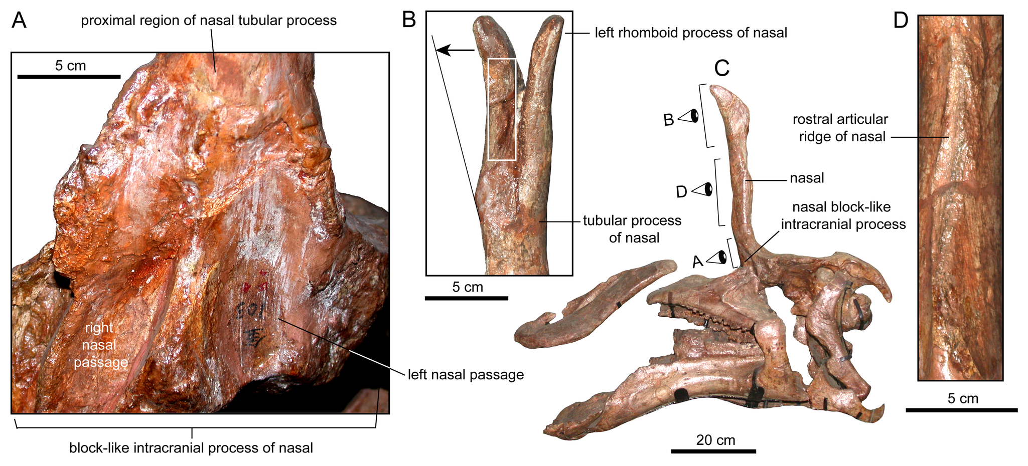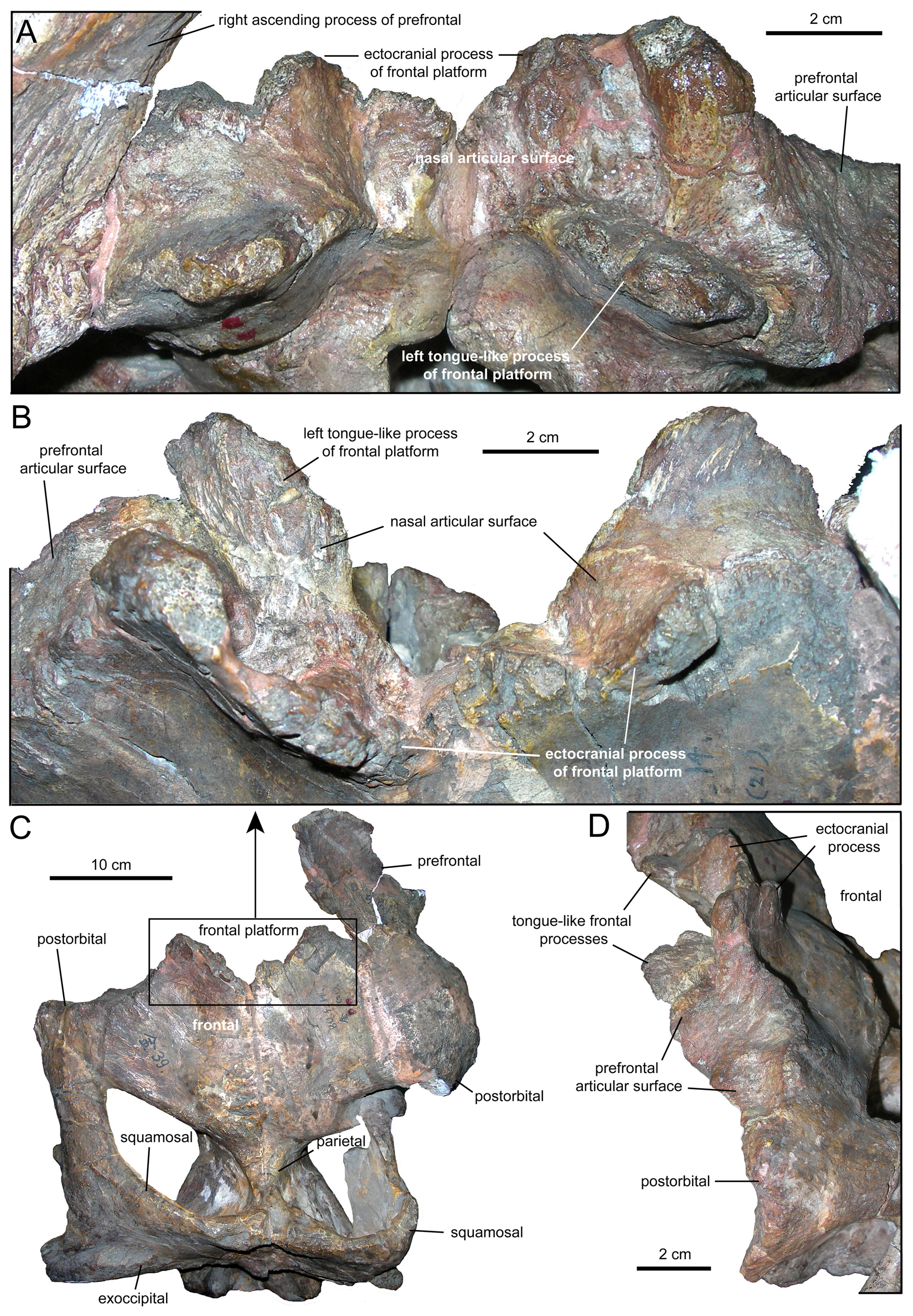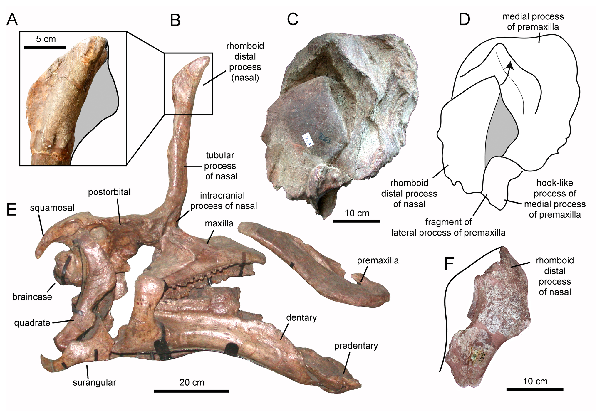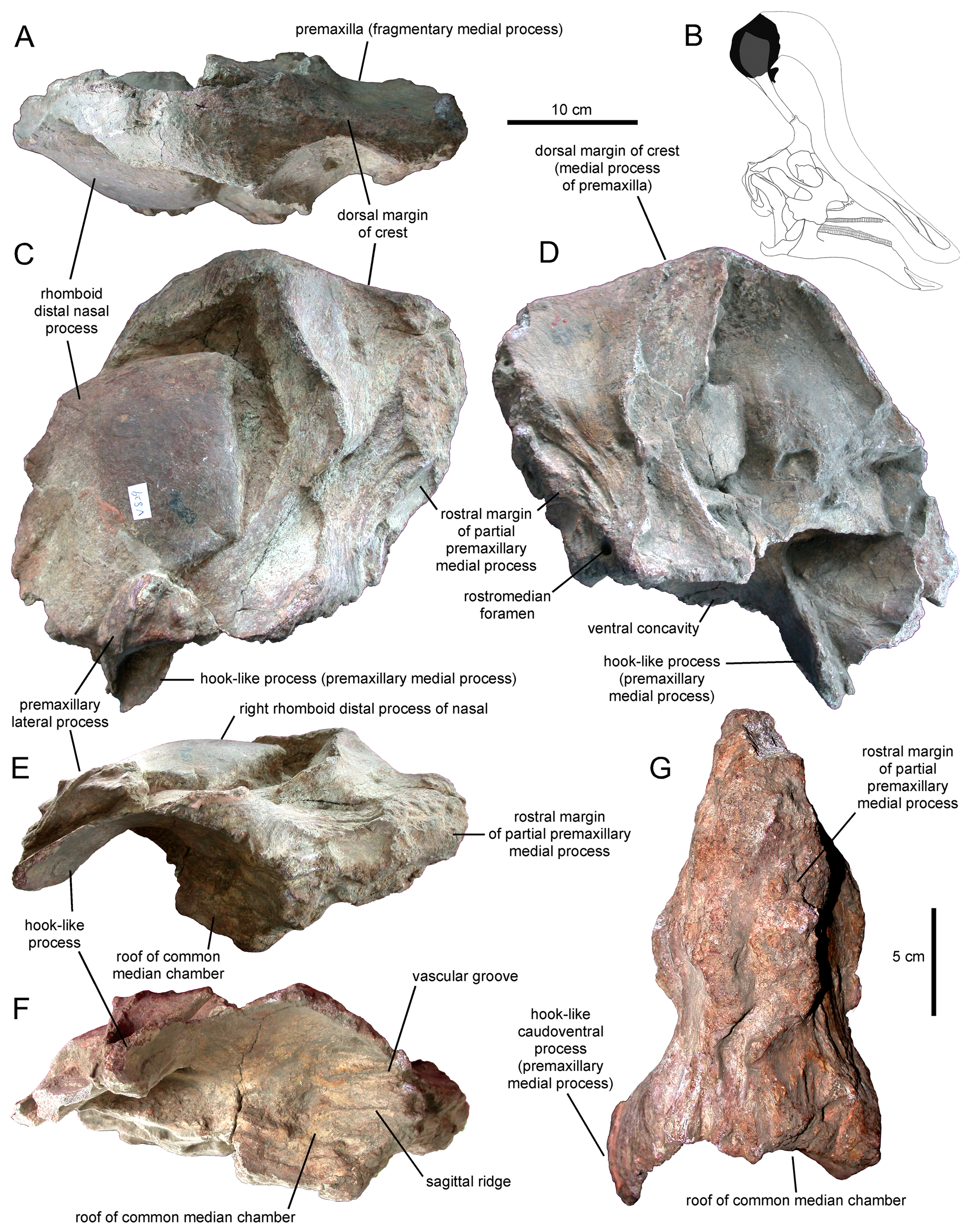 O holótipo inclui o crânio parcial com o processo nasal distintivo, vértebras e elementos dos membros. É o espécime mais importante para o entendimento da espécie e foi o sujeito das análises de tomografia computadorizada de Wang et al. (2020), que revelaram a estrutura interna sólida do processo nasal.