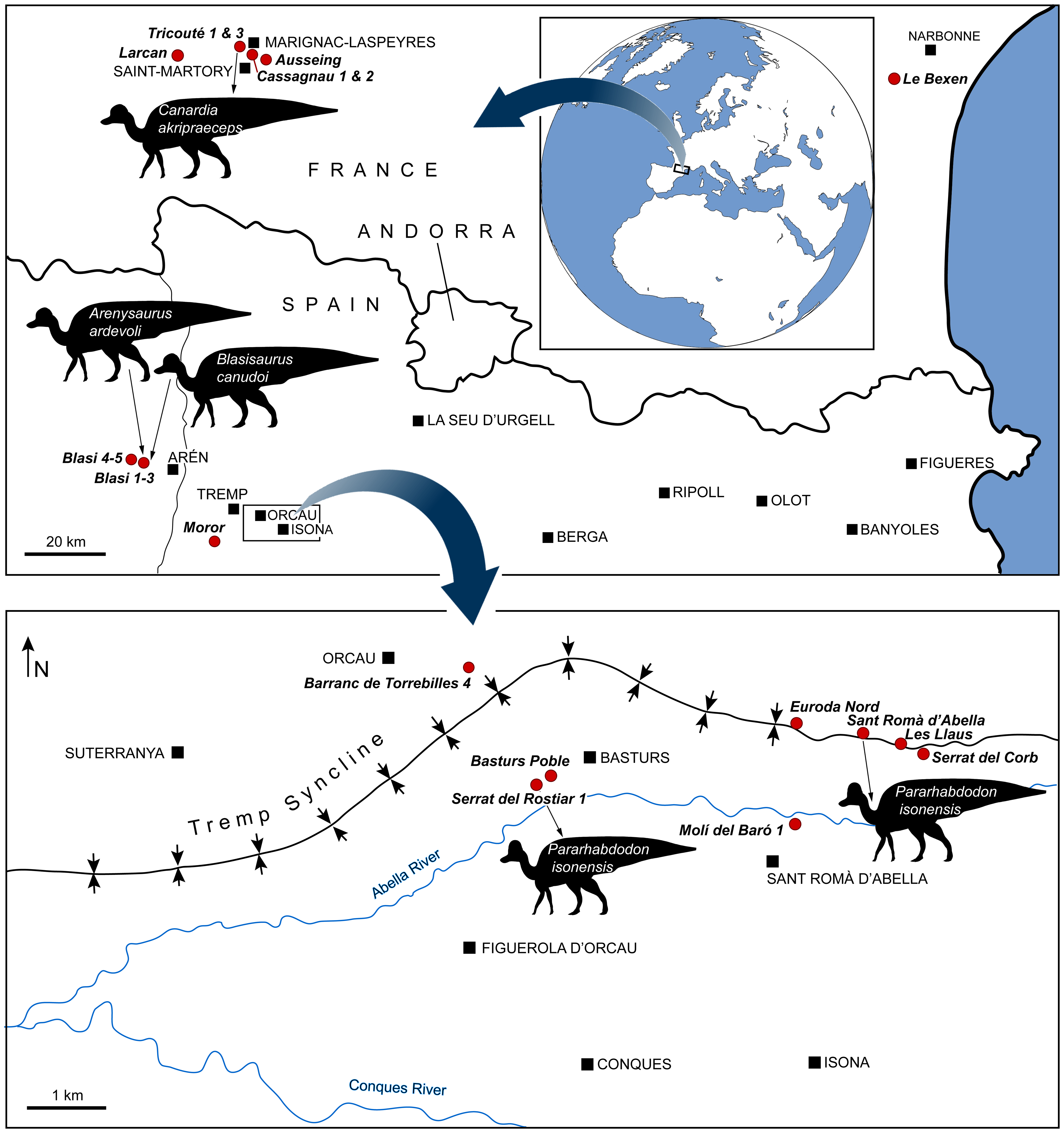 Este estudo descreve o novo hadrossaurídeo lambeossaurínio Canardia garonnensis do Maastrichtiano Superior da França, mas sua principal contribuição para o entendimento do Tsintaosaurus é a análise filogenética abrangente que inclui 39 hadrossaurídeos. A análise recupera Tsintaosaurus spinorhinus como membro do clado Tsintaosaurini, grupo-irmão de Pararhabdodon isonensis da Península Ibérica. A reconstrução biogeográfica sugere que os tsintaossaurinos dispersaram da Ásia para a Europa durante o Maastrichtiano, tornando Tsintaosaurus um elo fundamental para compreender a radiação dos lambeossauríneos em escala global. O trabalho reforça a posição de Tsintaosaurus como um lambeossaurínio basal com morfologia craniana plesiomórfica em relação aos táxons norte-americanos mais derivados.