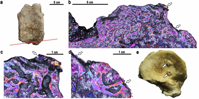 Estudo sobre senescência em um hadrossauroide que apresenta múltiplas patologias relacionadas à idade, incluindo artrite séptica, osteomielite e hiperostose esquelética idiopática difusa (DISH). O espécime é o registro mais antigo de doenças relacionadas ao envelhecimento em um dinossauro não-aviário, fornecendo perspectiva única sobre a longevidade e a fisiologia dos hadrossauroides. A relevância para o Tsintaosaurus é indireta, mas significativa: o estudo demonstra que hadrossauroides como o Tsintaosaurus viviam o suficiente para desenvolver doenças degenerativas da idade adulta tardia, confirmando longevidade substancial — provavelmente décadas. Este tipo de análise paleopatológica é fundamental para entender os limites fisiológicos e a qualidade de vida dos dinossauros herbívoros de grande porte como o Tsintaosaurus.