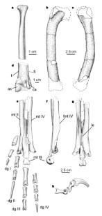 Diagrama do metatarso e pé do espécime MPC-D 100/985 de Velociraptor mongoliensis, com escala de 20 mm. Este espécime foi o mais completo descrito por Norell & Makovicky em seu trabalho de 1997.